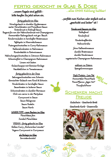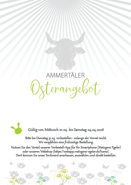 - Bitte nutzen Sie den Vorteil unserer Vorbestell-App (Metzgerei Egeler) oder unseren Webshop (https://webapp.metzgerei-egeler.de/home).
