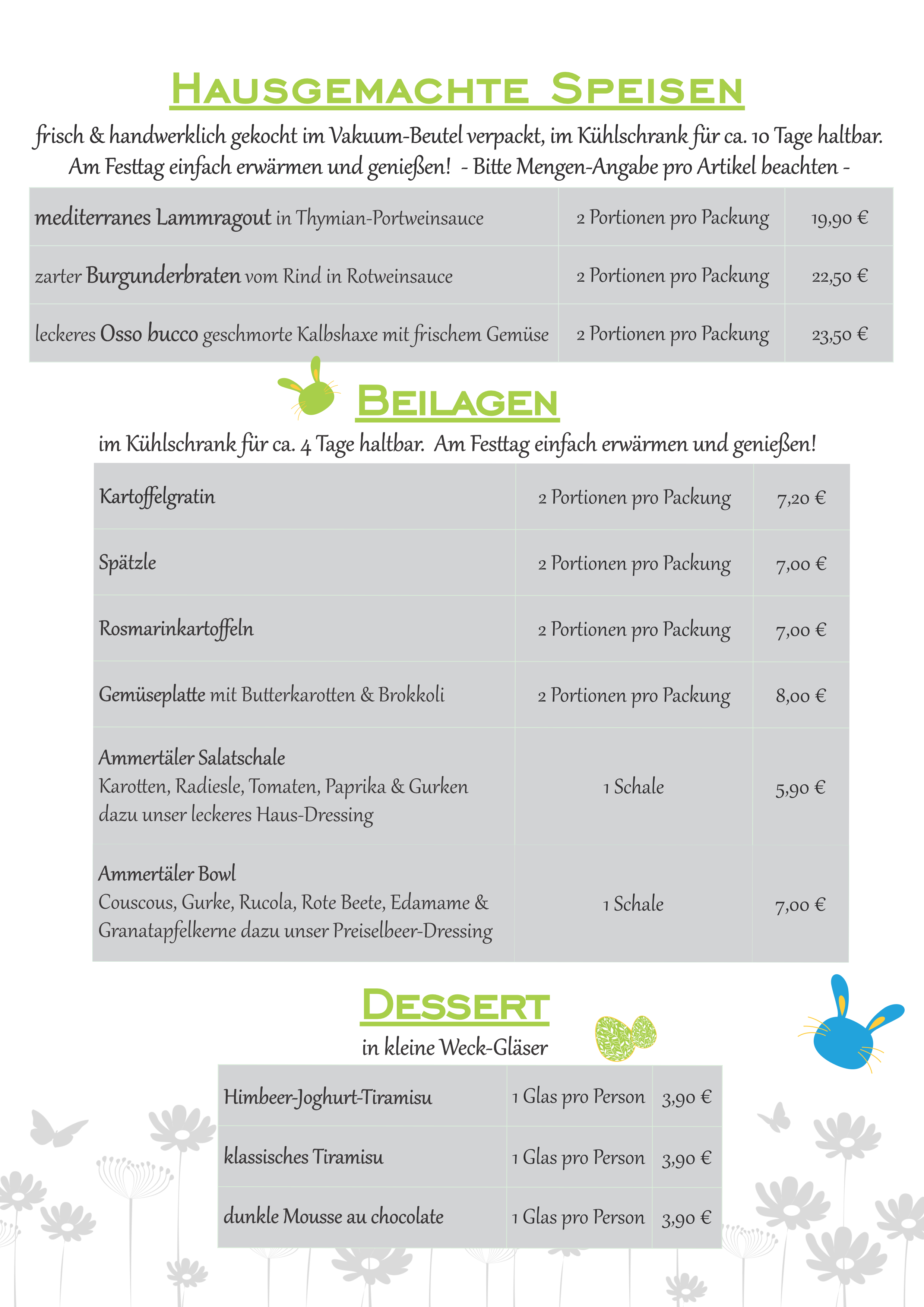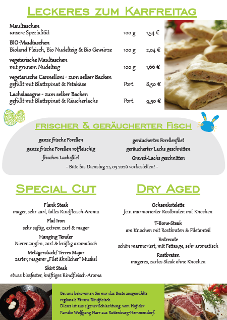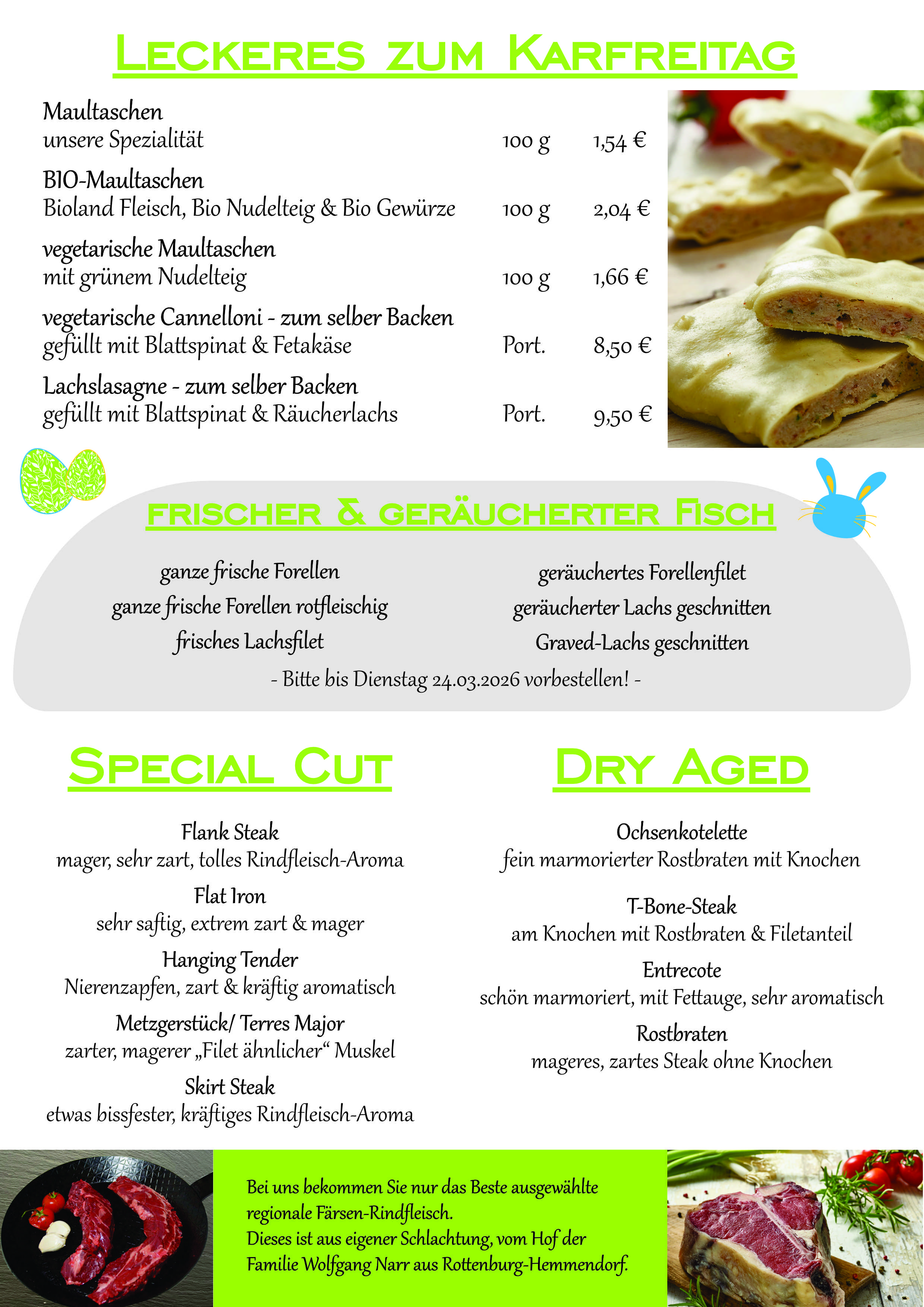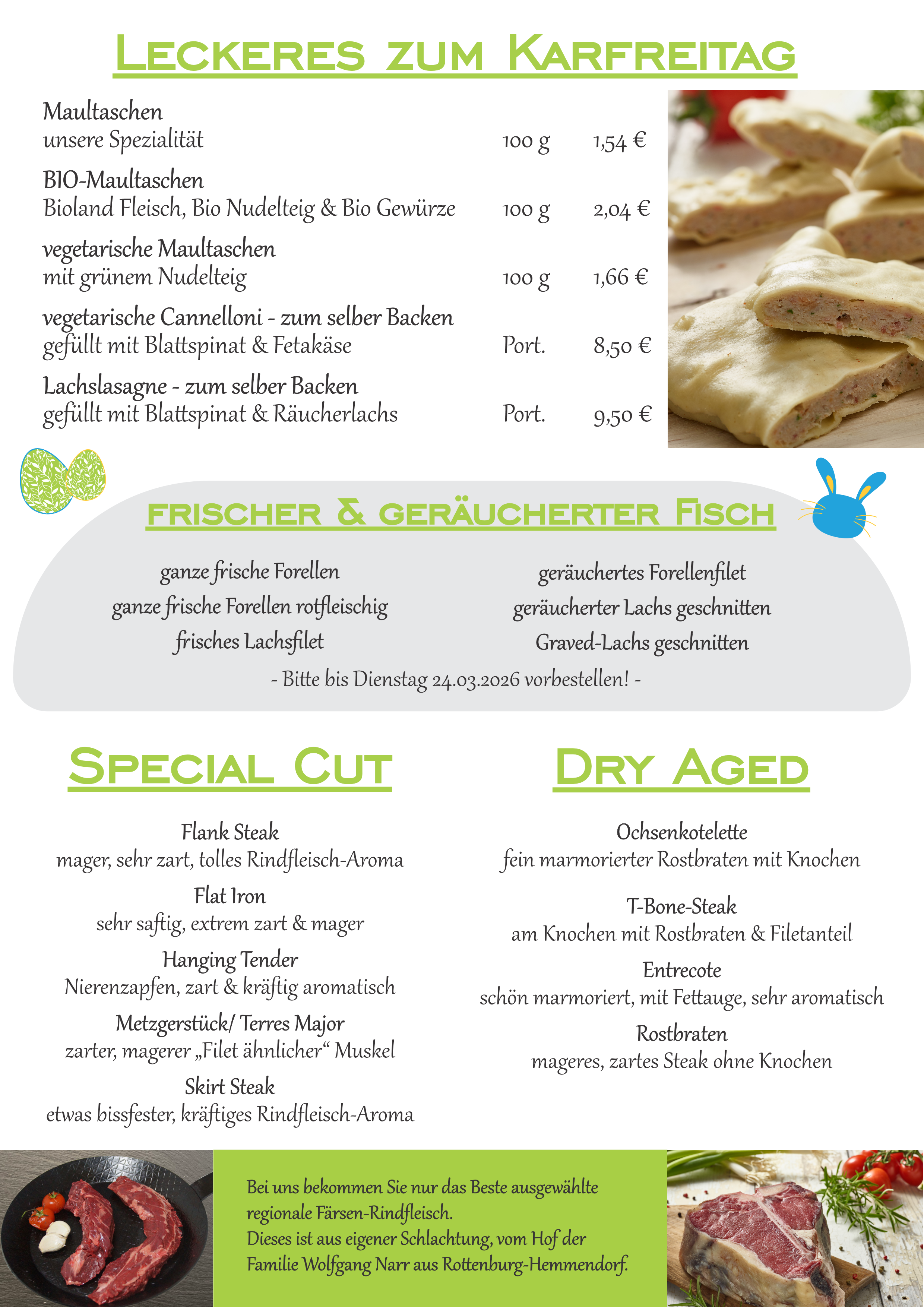 - Bitte bestellen Sie frühzeitig, Annahmeschluss ist voraussichtlich Dienstag 31.03.2026.